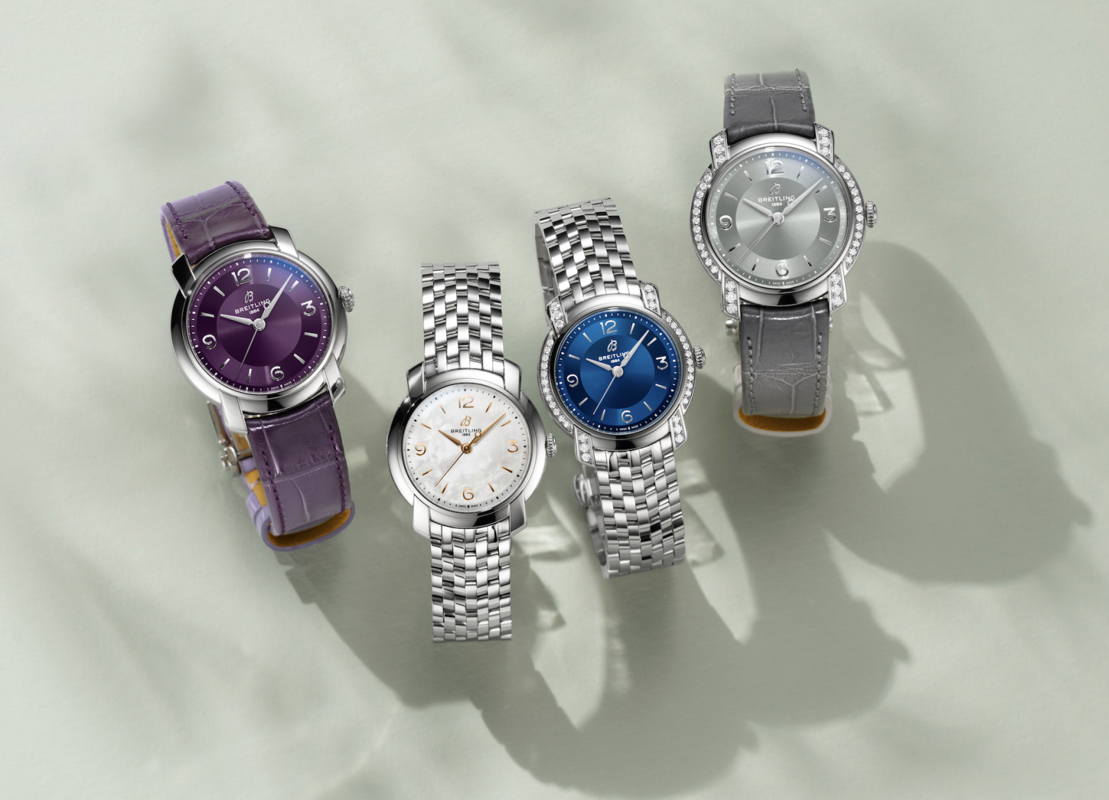 這款36毫米自動精鋼錶款的錶盤配色豐富,搭配相應的鱷魚皮革錶帶,含紫灰、灰綠和鴿灰色等漸層色調。18K金版本搭配漸層巧克力色錶帶。這款腕錶採用通過 COSC 認證的百年靈10型機芯,這款自動機芯能支援約42小時動力儲存。